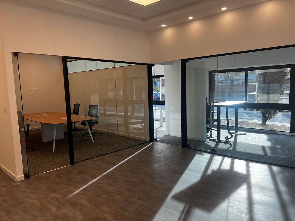 La obra consiste en la remodelación total del local de 300 m2 en un nivel con destino a oficinas colectivas, salas de reuniones y gerencias.